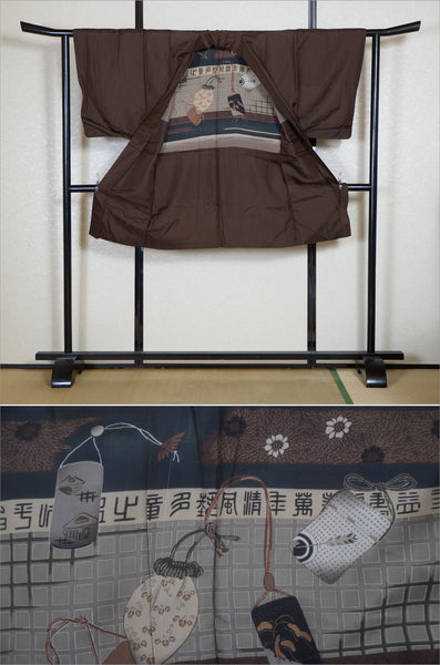 | This item is from a kimono auction where only a limited number of professional kimono buyers can participate. It is a one of a kind. A kimono jacket or 'haori' in Japanese is a jacket worn over the kimono to protect your kimono from dust and can also help to keep you warm. It is worn as a jacket for more formal occasions and don't have to be taken off when indoors. |
