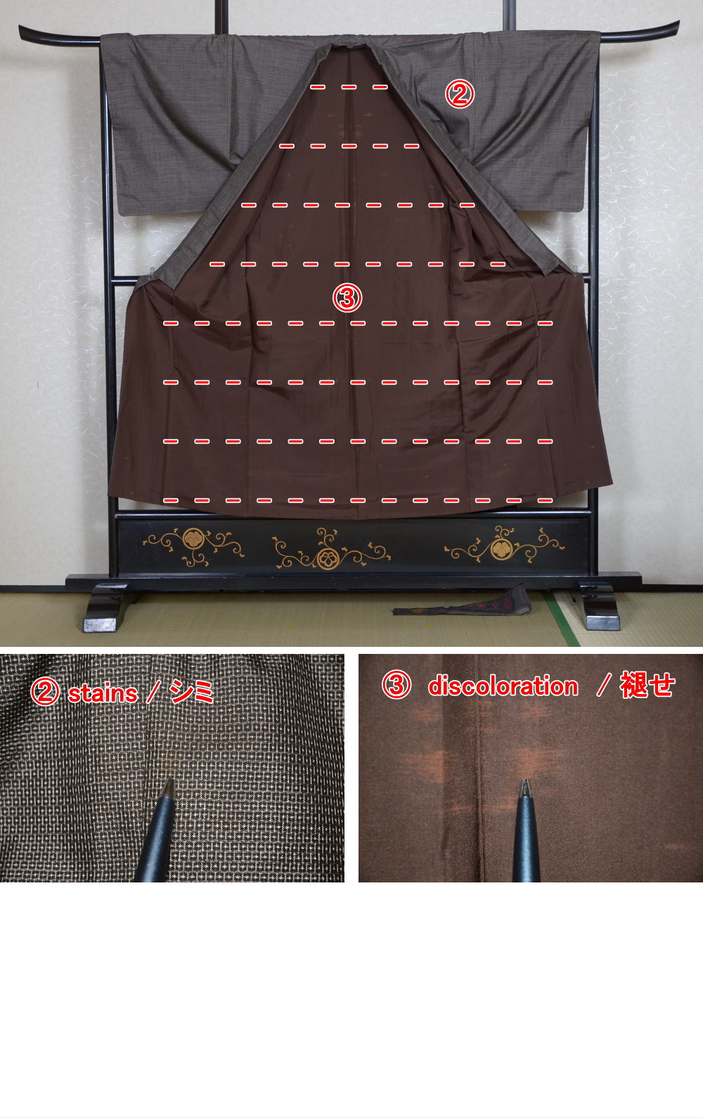 | Very good condition of all the used kimono. We can see a little signs of wear. There are small stains on it but not mind too much. You can wear it. | |