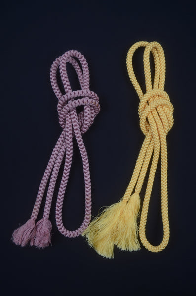 | Obi-jime is accessories for obi belts. They bring out the beauty of your obi belt and traditional kimono. - A colorful rope for the obi belt that helps it keep its shape. - Also serves as a decoration around the obi belt. | |