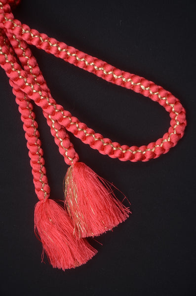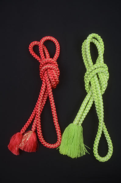 | Obi-jime is accessories for obi belts. They bring out the beauty of your obi belt and traditional kimono. - A colorful rope for the obi belt that helps it keep its shape. - Also serves as a decoration around the obi belt. | |