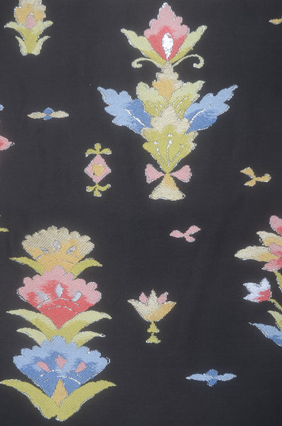| Traditional kimono obi belts are decorated with gorgeous and artistic designs all over. This obi is a Nagoya obi. Please tie the taiko knot. |