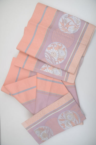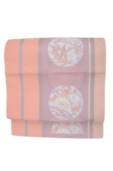 | Traditional kimono obi belts are decorated with gorgeous and artistic designs all over. This obi is a Nagoya obi. Please tie the taiko knot. |