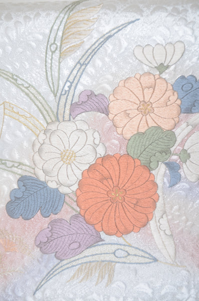 | Traditional kimono obi belts are decorated with gorgeous and artistic designs all over. This obi is a Nagoya obi. Please tie the taiko knot. |