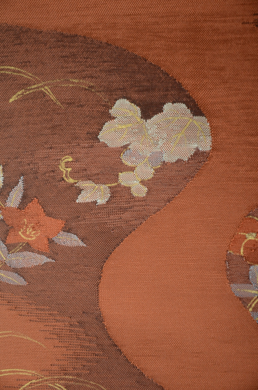 I selected this for one of my kurotomesode which has a pattern with similar colours. The embroidery pattern features hexagonal shapes, which I read symbolizes turtle shell and a long life like a turtle. Also, samurai armor has some hexagonal shapes on it, which makes it even cooler. 😊 The quality and condition is great and I'm looking forward to learn how to tie some obi knots!