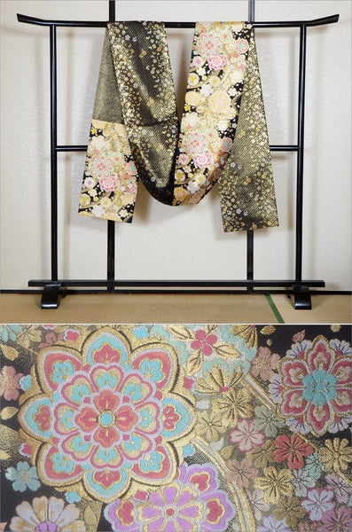 | Traditional kimono obi belts are decorated with gorgeous and artistic designs all over. Very wide obi belts which need to be folded in half when you tie them. |