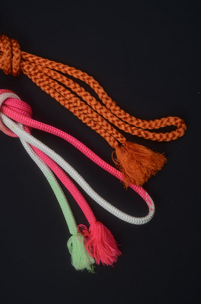 Obi-jime is accessories for obi belts. They bring out the beauty of your obi belt and traditional kimono. - A colorful rope for the obi belt that helps it keep its shape. - Also serves as a decoration around the obi belt. |