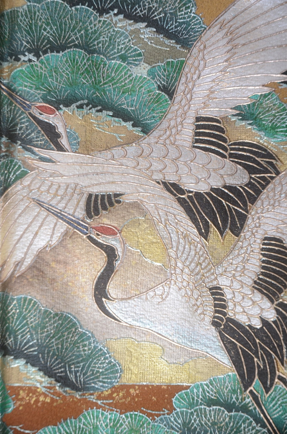 This item is from a kimono auction where only a limited number of professional kimono buyers can participate. It is a one of a kind. Traditional kimono is likened to "wearable art" since dozens of artisans' techniques are used in one kimono. These traditional techniques and designs are breathtakingly beautiful and it is hard to find words to describe them.