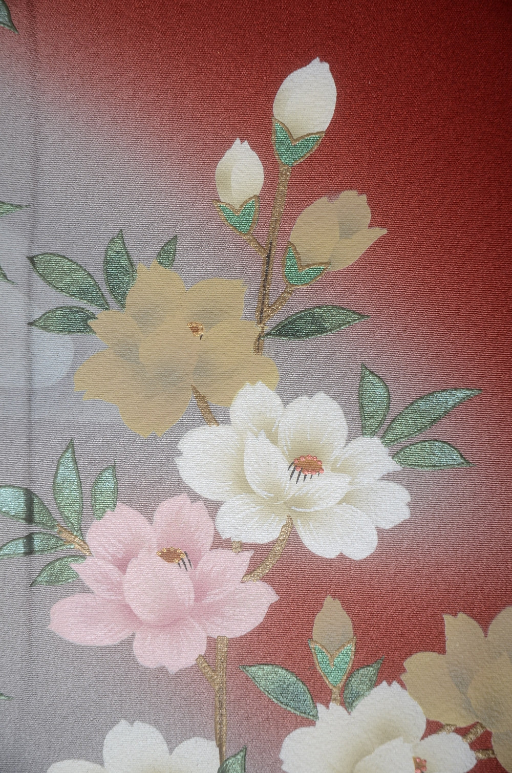 | All techniques (weaving, dyeing, embroidery) are great. The patterns and fabrics are both wonderful. In addition, it is kimono which we selected in our shop standard. Reference price (Brand new): over 3000US$ | |