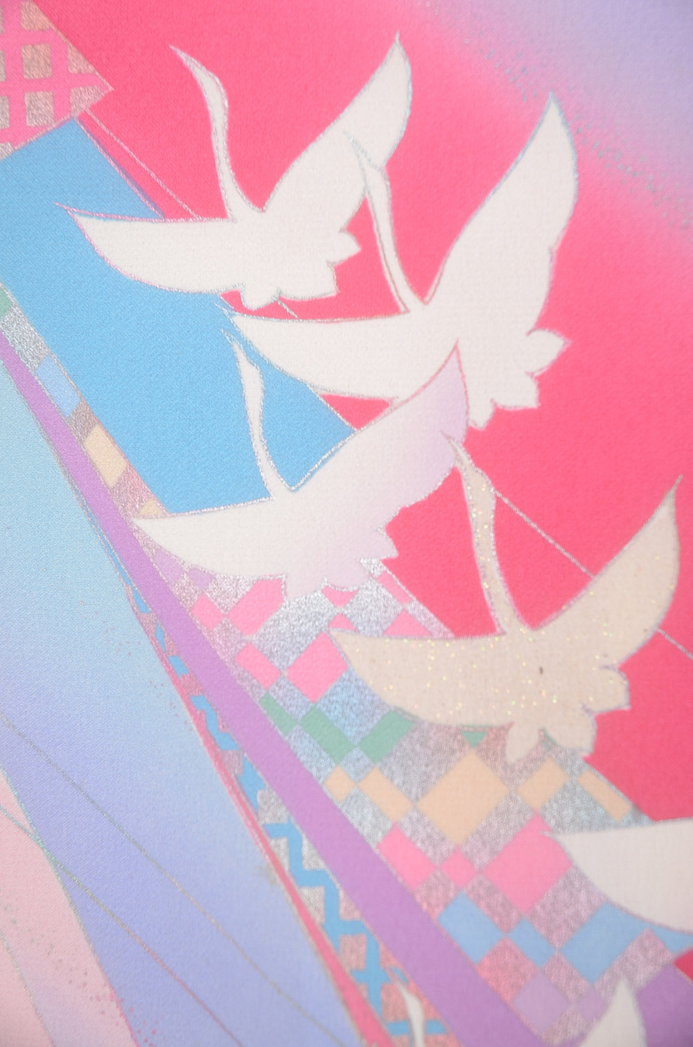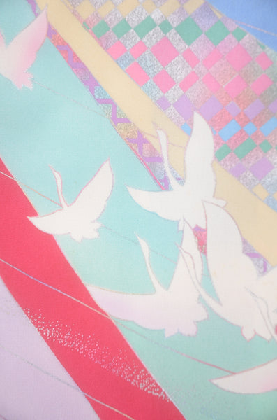 This item is from a kimono auction where only a limited number of professional kimono buyers can participate. It is a one of a kind. Traditional kimono is likened to "wearable art" since dozens of artisans' techniques are used in one kimono. These traditional techniques and designs are breathtakingly beautiful and it is hard to find words to describe them.