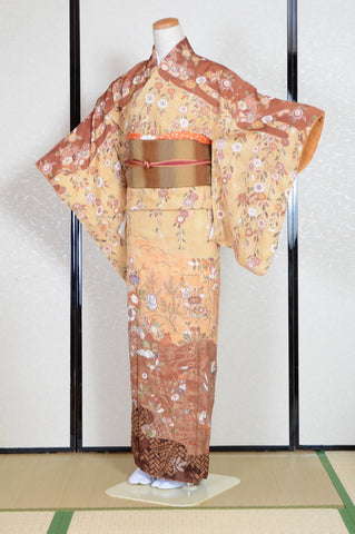 Kimono made by top-class or famous craftsmen and workshops. All techniques (weaving, dyeing, embroidery) are great. The patterns and fabrics are both wonderful. In addition, it is kimono which we selected in our shop standard. Reference price (Brand new): over 6000US$