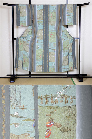 | Kimono made by top-class or famous craftsmen and workshops. All techniques (weaving, dyeing, embroidery) are great. The patterns and fabrics are both wonderful. In addition, it is kimono which we selected in our shop standard. Reference price (Brand new): over 6000US$ |