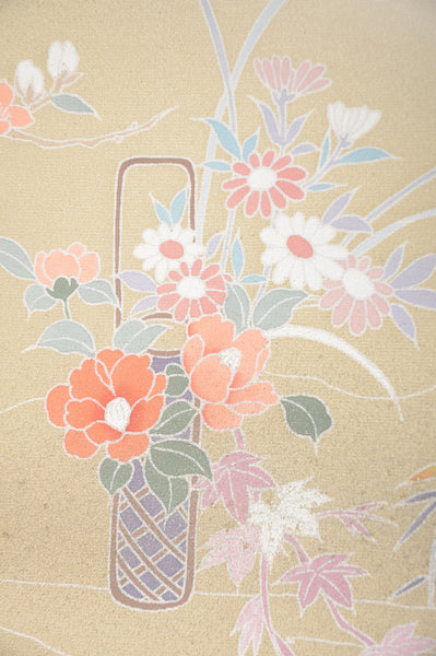 | This item is from a kimono auction where only a limited number of professional kimono buyers can participate. It is a one of a kind. Traditional kimono is likened to "wearable art" since dozens of artisans' techniques are used in one kimono. These traditional techniques and designs are breathtakingly beautiful and it is hard to find words to describe them. | |