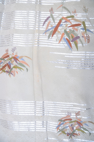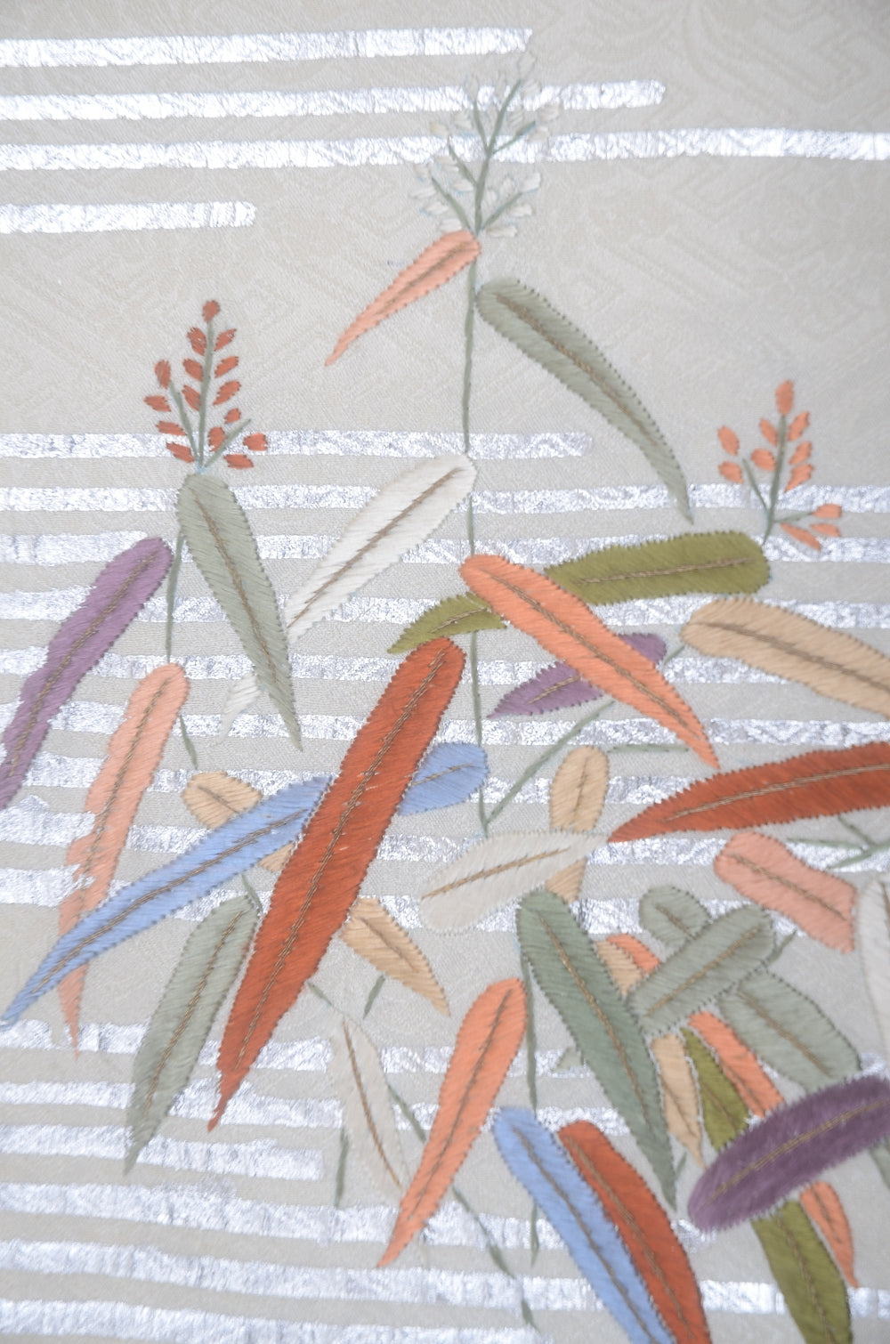 | This item is from a kimono auction where only a limited number of professional kimono buyers can participate. It is a one of a kind. Traditional kimono is likened to "wearable art" since dozens of artisans' techniques are used in one kimono. These traditional techniques and designs are breathtakingly beautiful and it is hard to find words to describe them. | |