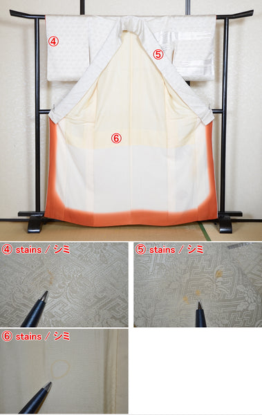 | Very good condition of all the used kimono. We can see a little signs of wear. There are small stains on it but not mind too much. You can wear it. | |