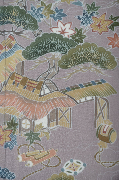 | This item is from a kimono auction where only a limited number of professional kimono buyers can participate. It is a one of a kind. Traditional kimono is likened to "wearable art" since dozens of artisans' techniques are used in one kimono. These traditional techniques and designs are breathtakingly beautiful and it is hard to find words to describe them. | |
