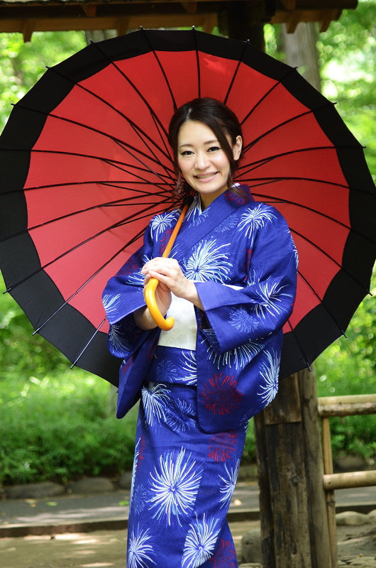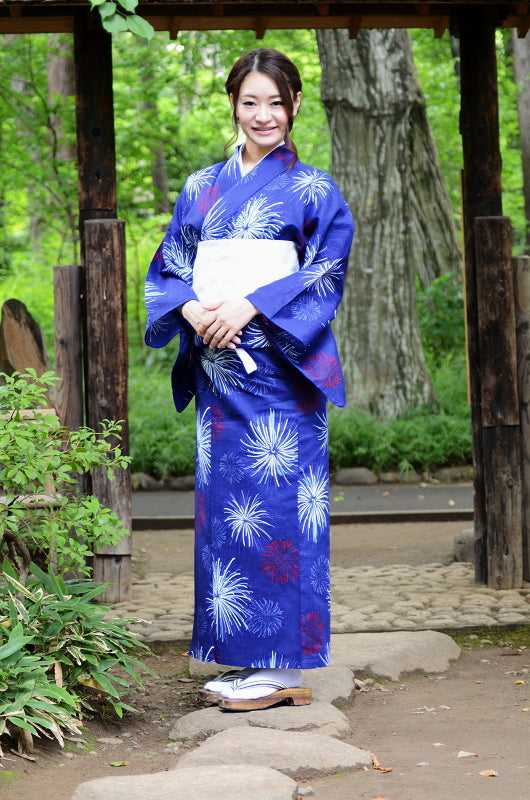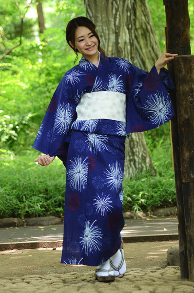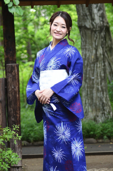 | The yukata kimono is one size fits all. You can adjust the length of the yukata with a inner belt. >>Learn more |