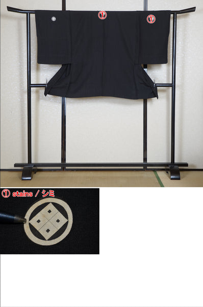 Very good condition of all the used kimono. We can see a little signs of wear. There are small stains on it but not mind too much. You can wear it.