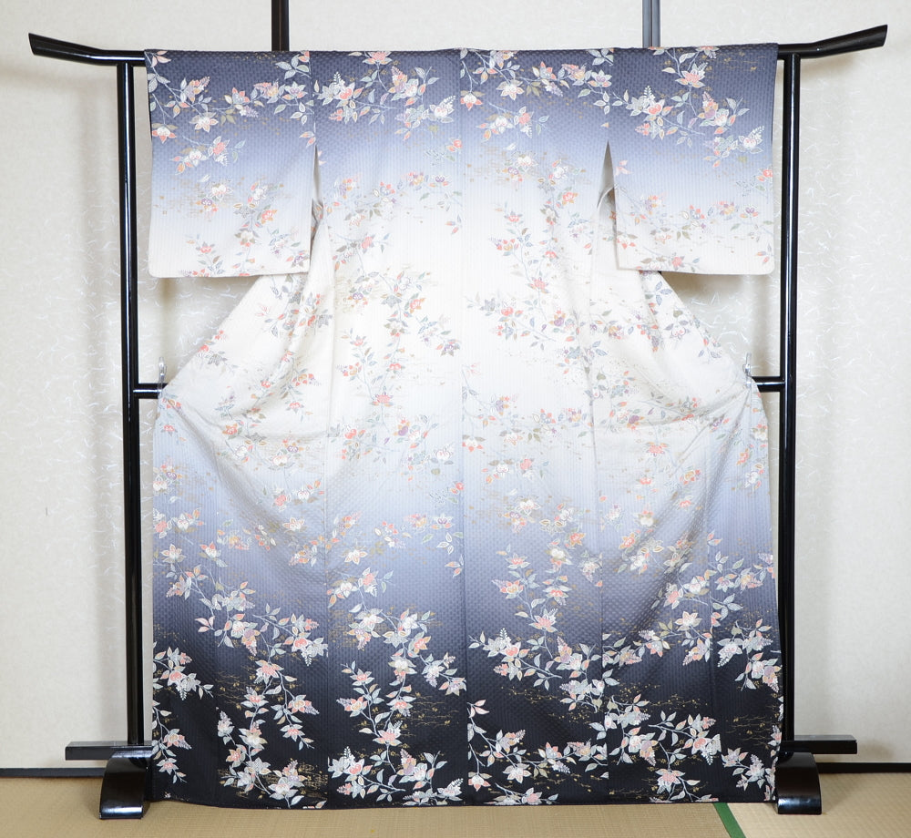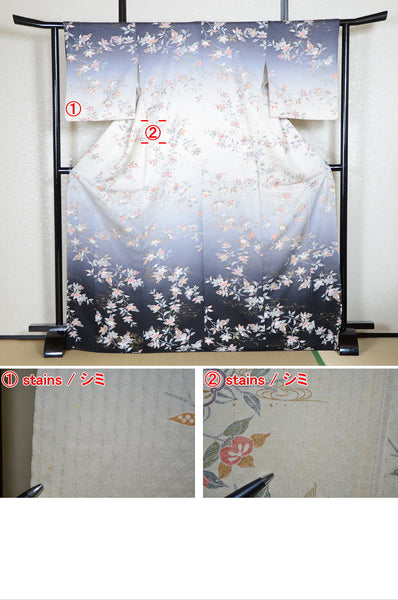 | This item is from a kimono auction where only a limited number of professional kimono buyers can participate. It is a one of a kind. Traditional kimono is likened to "wearable art" since dozens of artisans' techniques are used in one kimono. These traditional techniques and designs are breathtakingly beautiful and it is hard to find words to describe them. | |