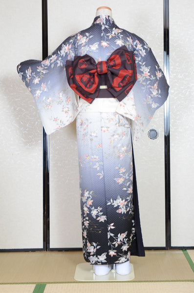 | All techniques (weaving, dyeing, embroidery) are great. The patterns and fabrics are both wonderful. In addition, it is kimono which we selected in our shop standard. Reference price (Brand new): over 3000US$ | |