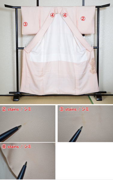 Very good condition of all the used kimono. We can see a little signs of wear. There are small stains on it but not mind too much. You can wear it.