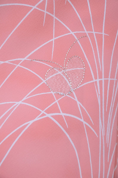 The kimono we sell this time is of the same quality as the kimono we usually sell. And this item is from a kimono auction where only a limited number of professional kimono buyers can participate. It is a one of a kind. Traditional kimono is likened to "wearable art" since dozens of artisans' techniques are used in one kimono. These traditional techniques and designs are breathtakingly beautiful and it is hard to find words to describe them. |