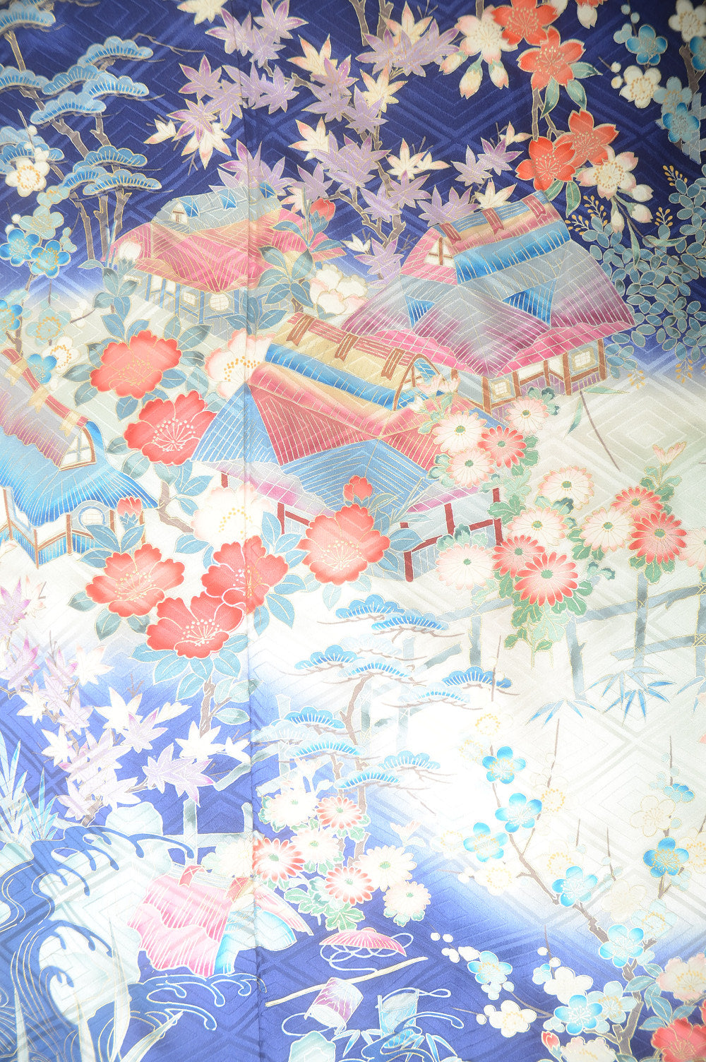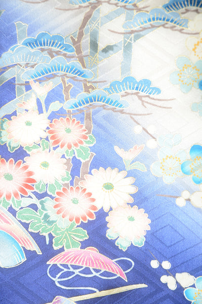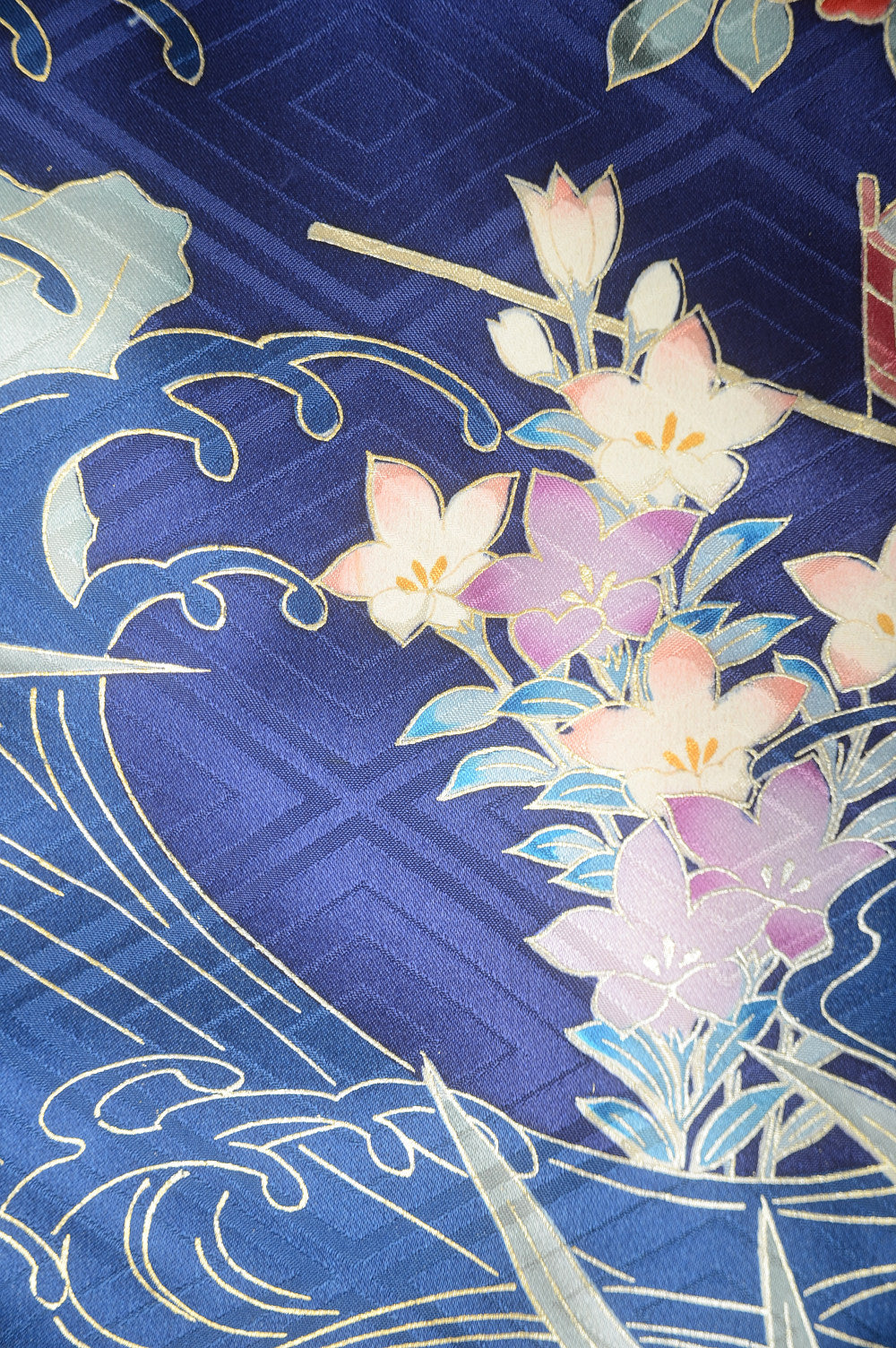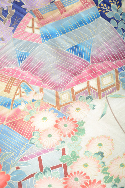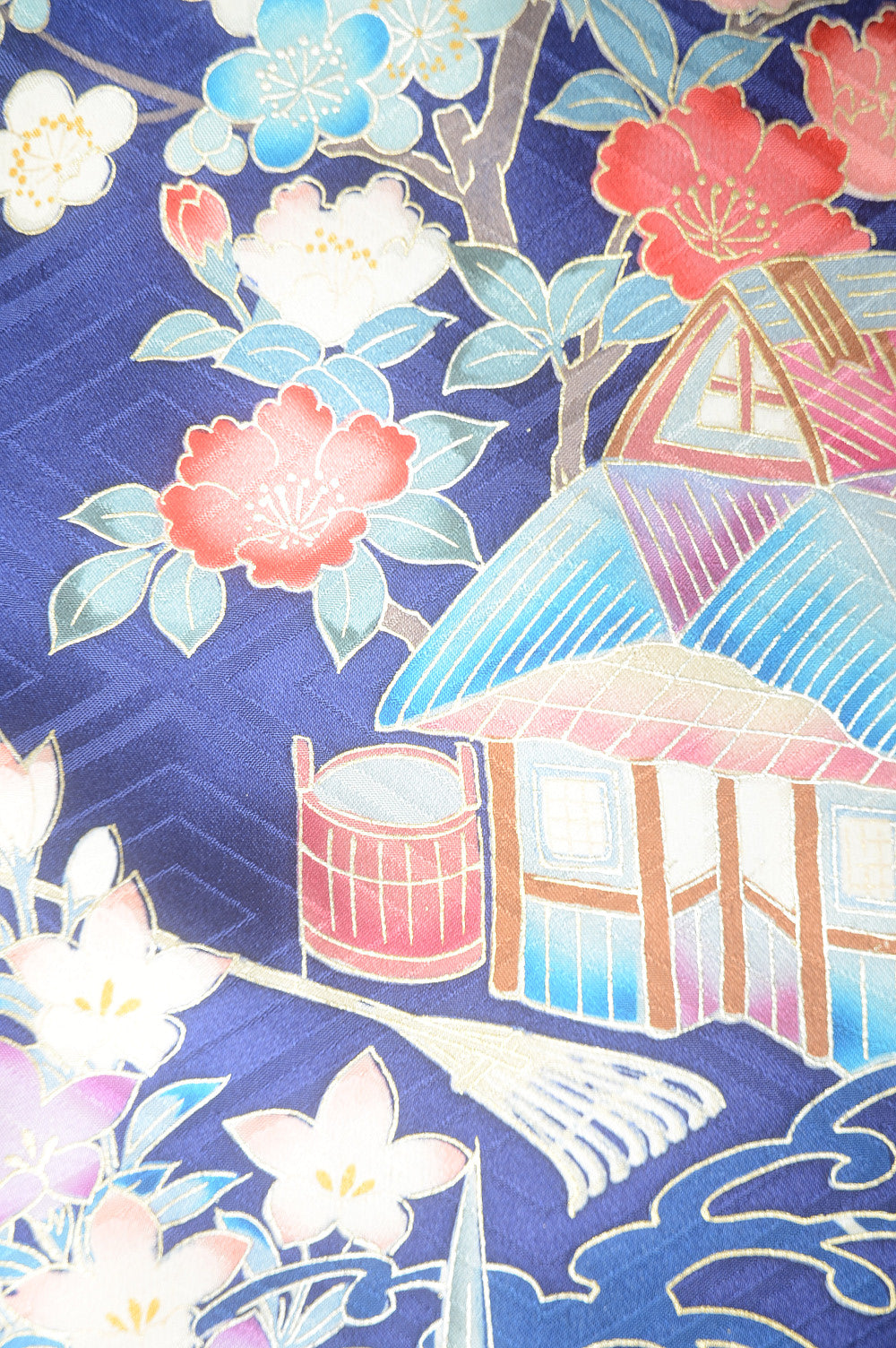 | This item is from a kimono auction where only a limited number of professional kimono buyers can participate. It is a one of a kind. Traditional kimono is likened to "wearable art" since dozens of artisans' techniques are used in one kimono. These traditional techniques and designs are breathtakingly beautiful and it is hard to find words to describe them. | |
