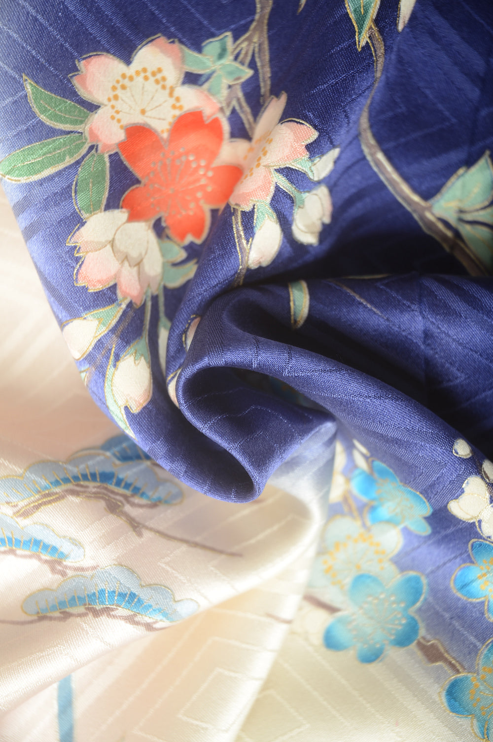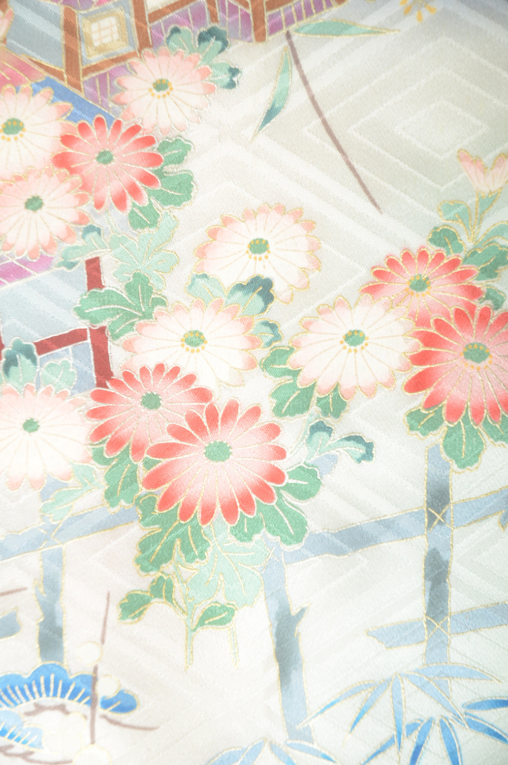 | All techniques (weaving, dyeing, embroidery) are great. The patterns and fabrics are both wonderful. In addition, it is kimono which we selected in our shop standard. Reference price (Brand new): over 3000US$ | |