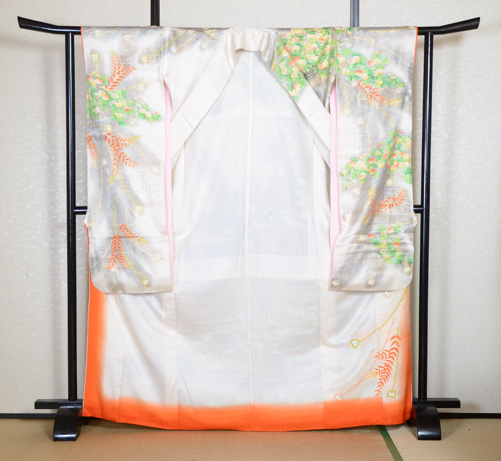 | All techniques (weaving, dyeing, embroidery) are great. The patterns and fabrics are both wonderful. In addition, it is kimono which we selected in our shop standard. Reference price (Brand new): over 3000US$ | |