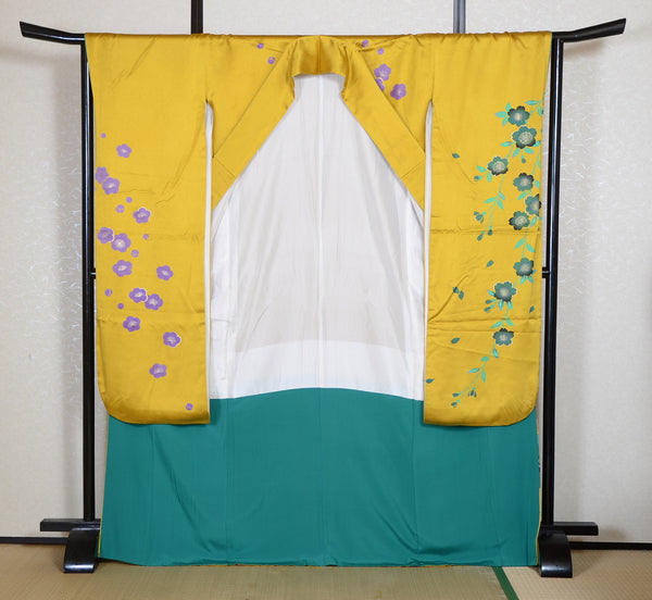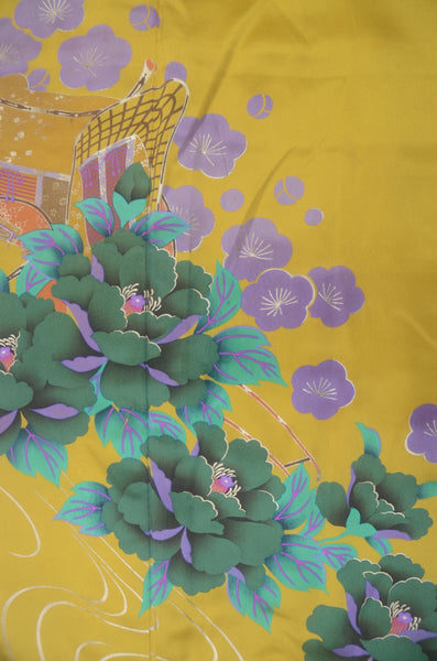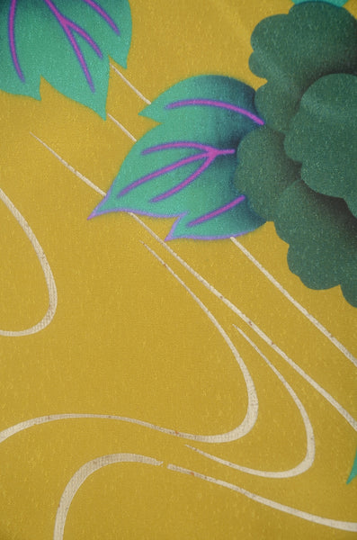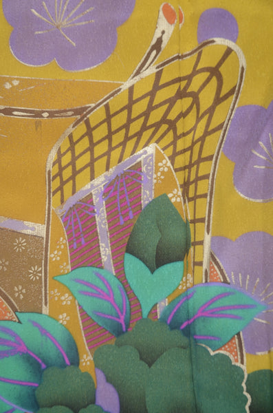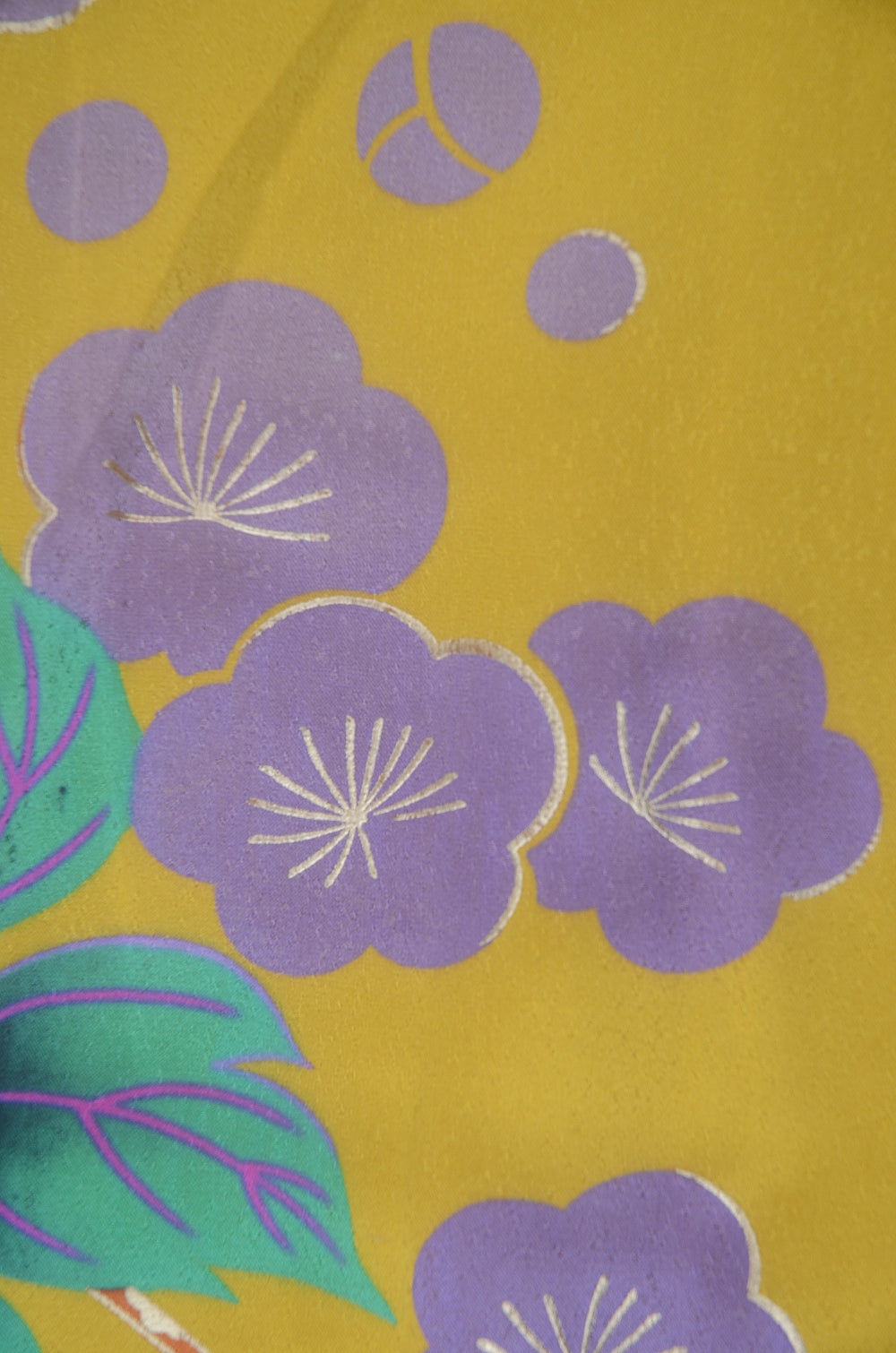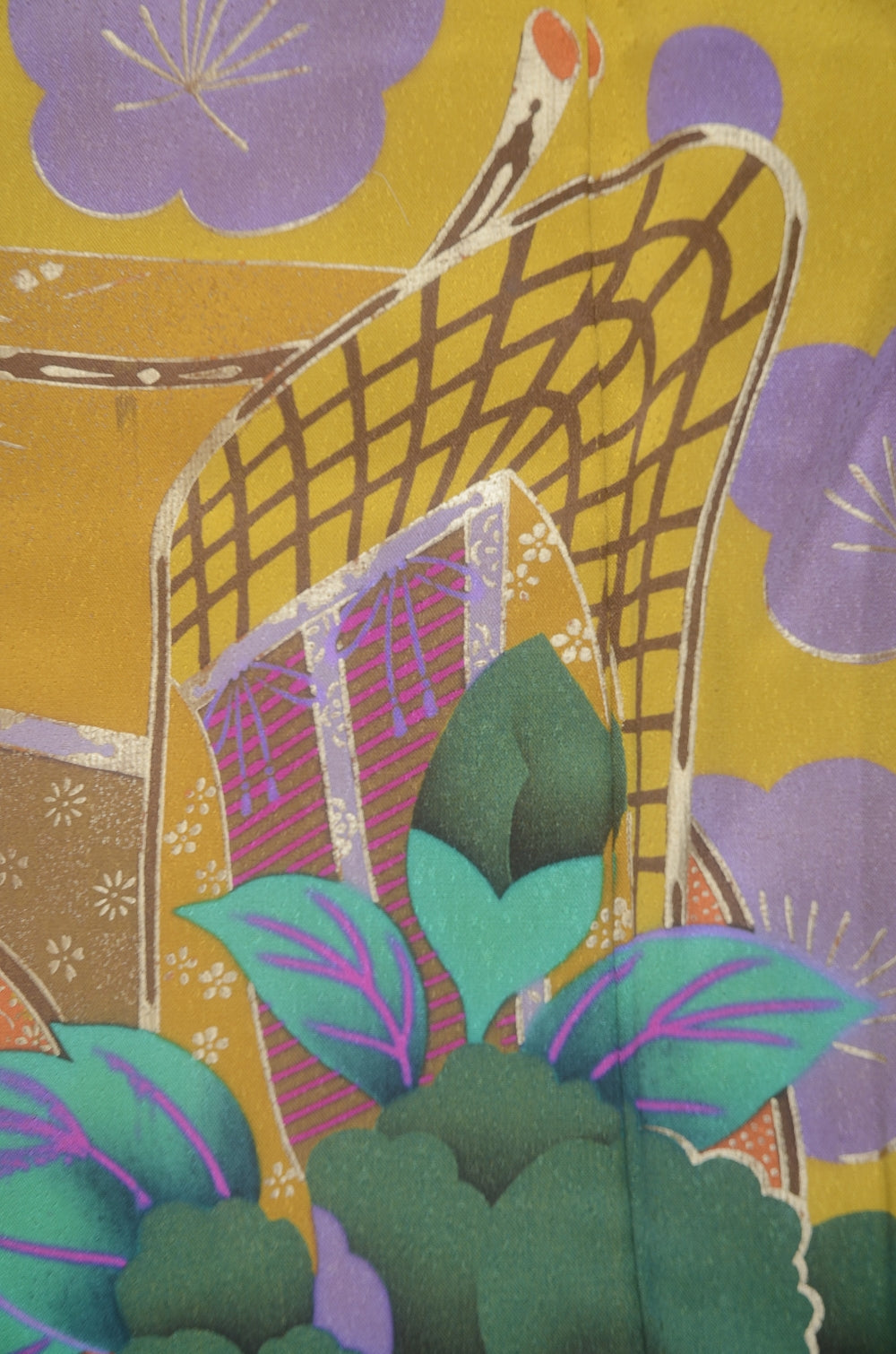 | This item is from a kimono auction where only a limited number of professional kimono buyers can participate. It is a one of a kind. Traditional kimono is likened to "wearable art" since dozens of artisans' techniques are used in one kimono. These traditional techniques and designs are breathtakingly beautiful and it is hard to find words to describe them. | |
