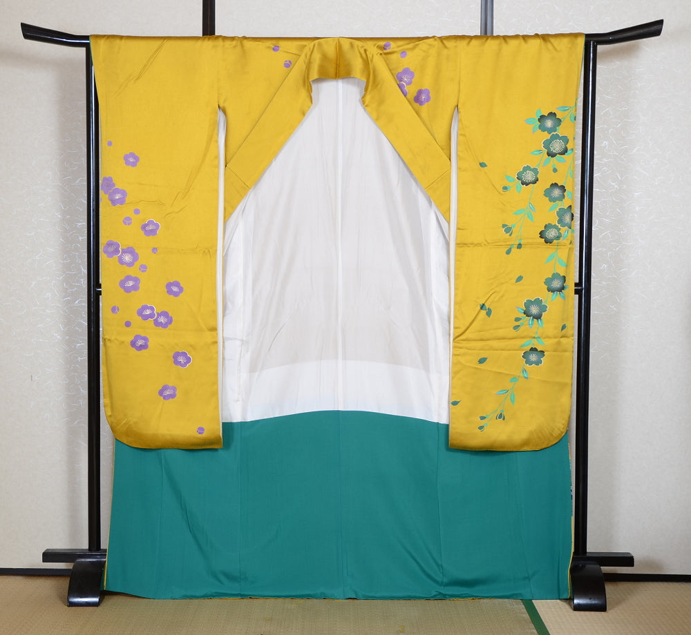 | All techniques (weaving, dyeing, embroidery) are great. The patterns and fabrics are both wonderful. In addition, it is kimono which we selected in our shop standard. Reference price (Brand new): over 3000US$ | |