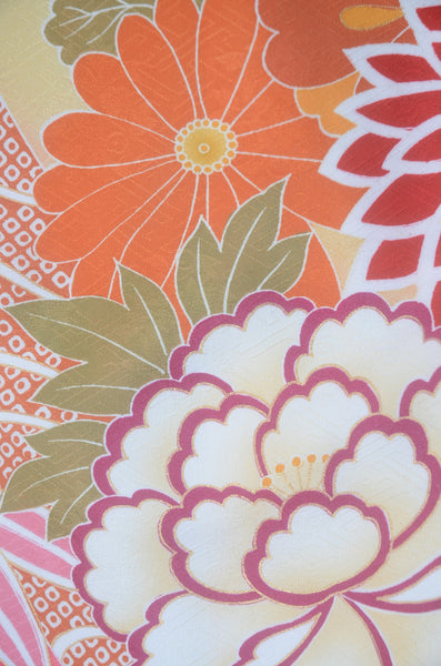 | This item is from a kimono auction where only a limited number of professional kimono buyers can participate. It is a one of a kind. Traditional kimono is likened to "wearable art" since dozens of artisans' techniques are used in one kimono. These traditional techniques and designs are breathtakingly beautiful and it is hard to find words to describe them. | |