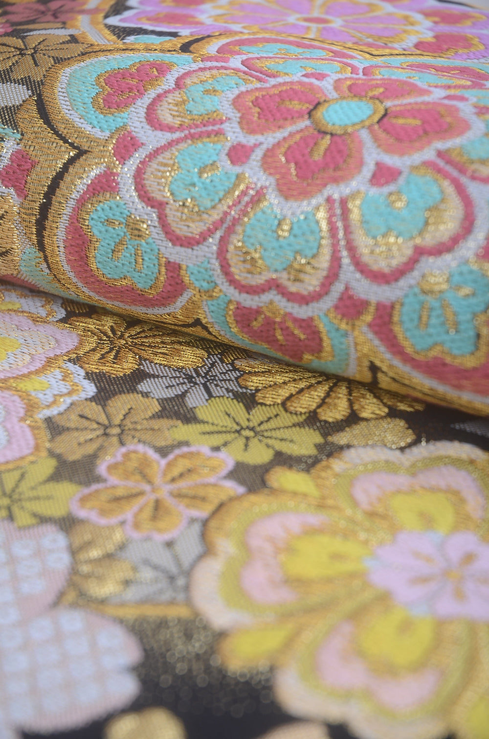 | Traditional kimono obi belts are decorated with gorgeous and artistic designs all over. Very wide obi belts which need to be folded in half when you tie them. |