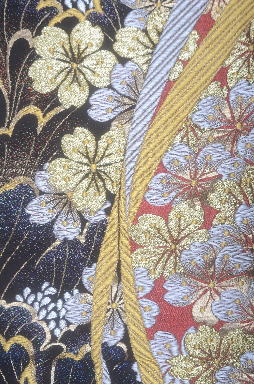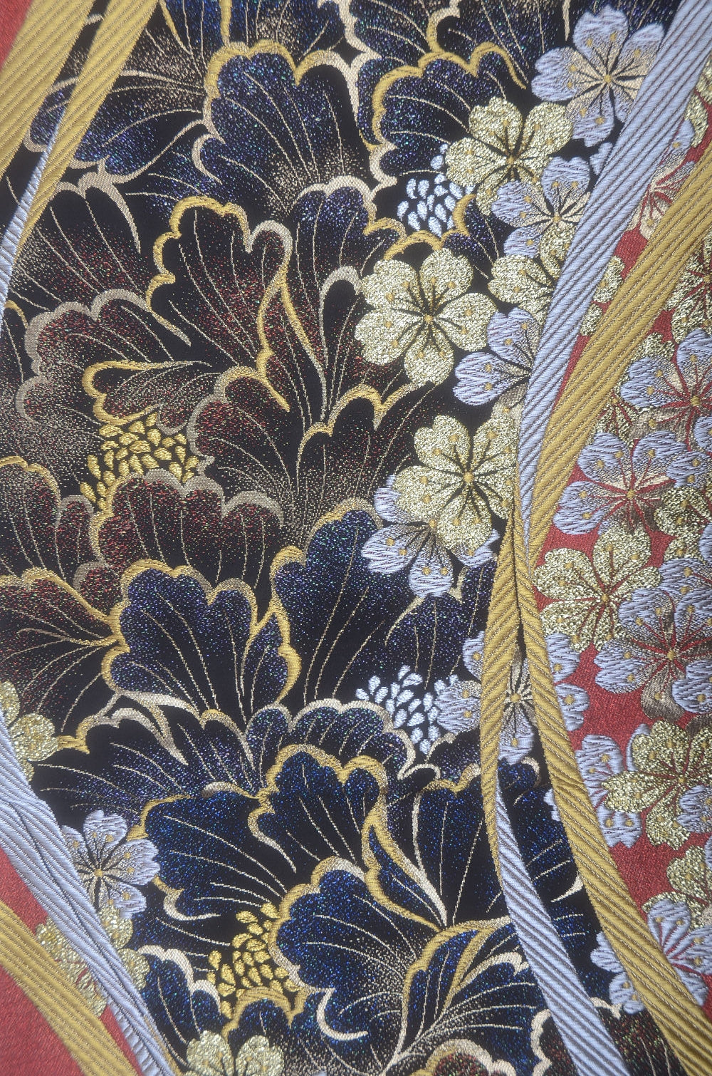 | Traditional kimono obi belts are decorated with gorgeous and artistic designs all over. Very wide obi belts which need to be folded in half when you tie them. |