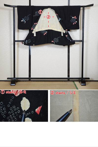 | This item is from a kimono auction where only a limited number of professional kimono buyers can participate. It is a one of a kind. Traditional kimono is likened to "wearable art" since dozens of artisans' techniques are used in one kimono. These traditional techniques and designs are breathtakingly beautiful and it is hard to find words to describe them. | |