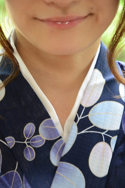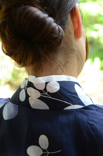 | To create an elegant look, show a little bit of its collar from beneath the collar of the kimono. | |