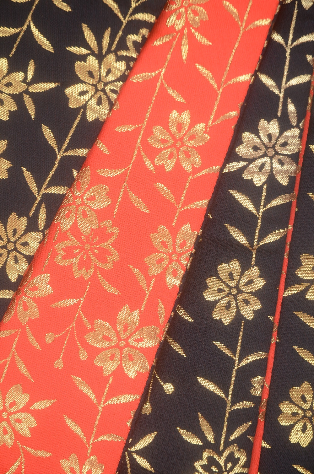 | Woven and dyed obi belts ("Han-haba obi" in Japanese) have rich colors and are of higher quality compared to flat obi belts. They are not too formal and can be used with both yukata kimonos and Japanese kimonos. | |