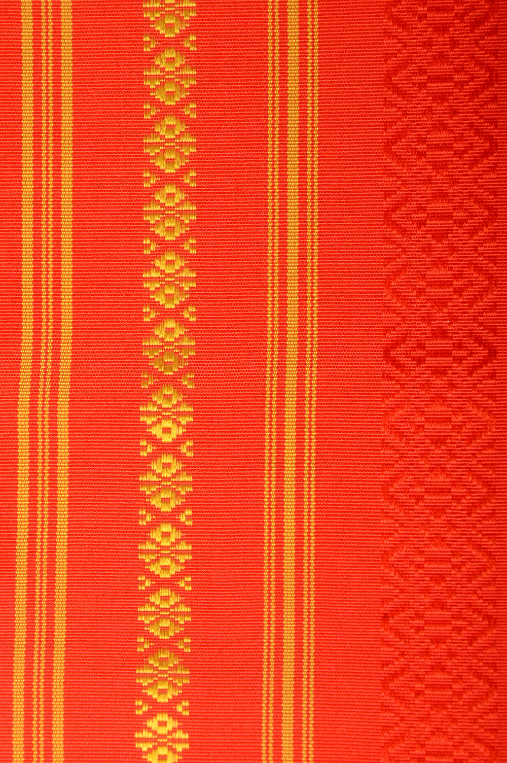 | Woven and dyed obi belts ("Han-haba obi" in Japanese) have rich colors and are of higher quality compared to flat obi belts. They are not too formal and can be used with both yukata kimonos and Japanese kimonos. | |